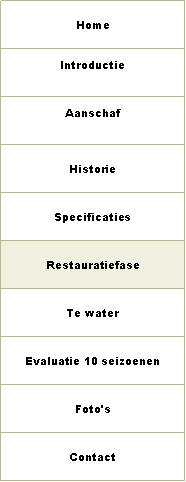 · Inventarisatie van de Walta en een eerste plan voor de uit te voeren werkzaamheden. · Schip grondig schoonmaken. · Ontdoen van alle lak-, verf- en conserveringslagen om een goed beeld te krijgen van de conditie van huid, spanten, hoofdconstructie, dek roef, kuip, interieur, mast, giek, etcetera. · Alle beslag verwijderd · Onderste gangen verwijderd om achterliggende hoofdconstructie te kunnen bekijken. · Verwijderen van grote delen van de hoofdconstructie met een pootschepje alvorens de paddenstoelen geoogst te hebben en de fauna van kevers, torren en andere insecten vervangende woonruimte te hebben aangeboden bij een nabij gelegen project (lees: houten schip van de buurman in verre staat van ontbinding) · Verwijderen van multiplex dek. (dit was over het originele dek heen “gelegd” · Verwijderen van het originele dek , roef, kuip en betimmering. · Verwijderen loden kiel. De ijzeren of stalen kielbouten waren tot minder dan halve diameter weg gerot. |